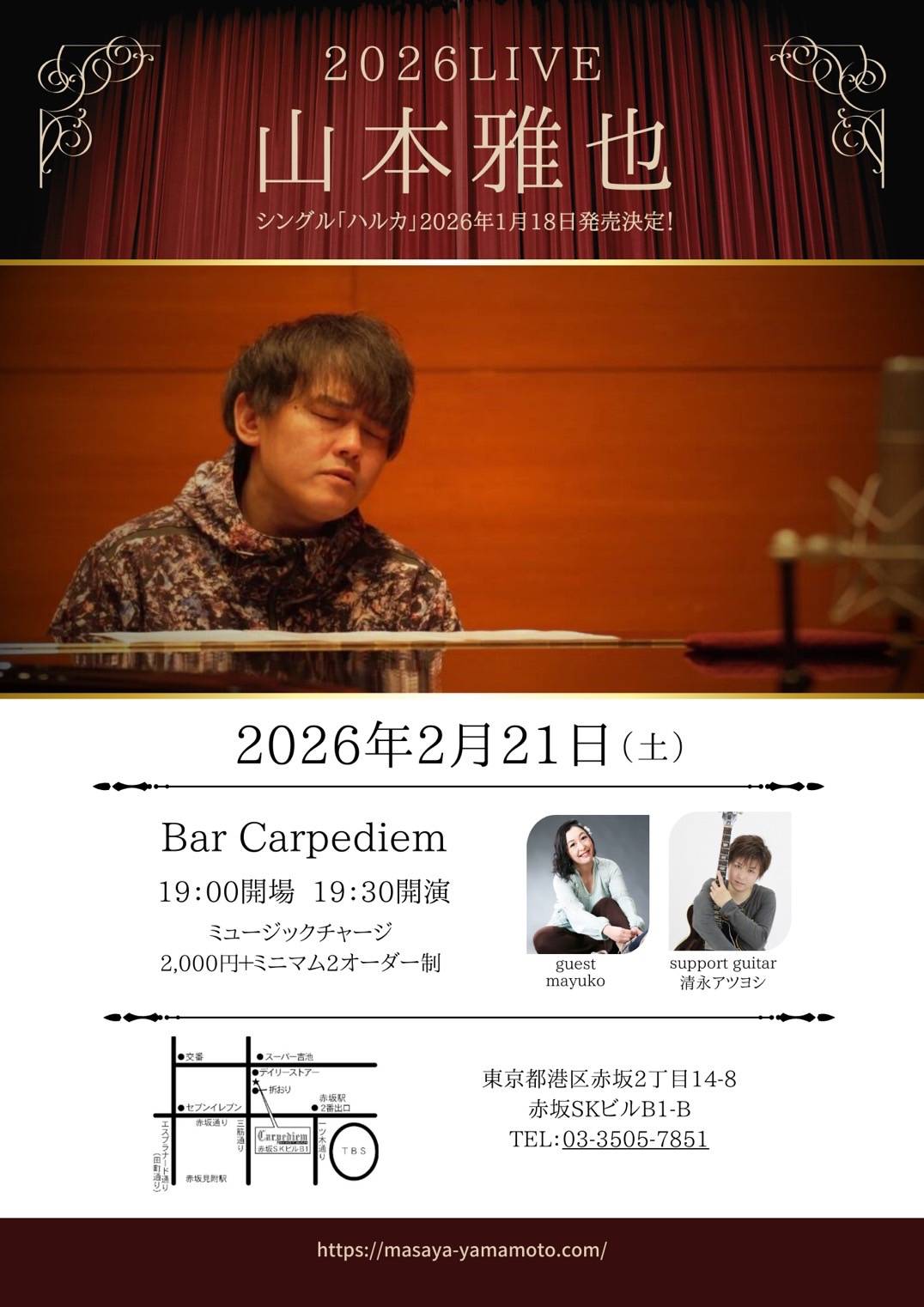 2月21日(土)カーペディアム 山本雅也ライブ 港区赤坂